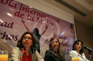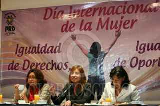 MÉXICO D.F., 07MARZO2010.- Martha Juárez, Leticia Quezada, Diputada Federal del PRD y Beatriz Rojas, Legisladora del D.F. por el mismo partido, durante la conferencia ofrecida a representantes de los medios de comunicación, donde dieron a conocer algunos datos sobre el trato marginal, minoritario desequilibrado y en muchos casos nulo el que mantiene la mujer en la toma de decisiones en México, esto al festejarse mañana el Día Internacional de la Mujer. FOTO: GUILLERMO PEREA/CUARTOSCURO.COM