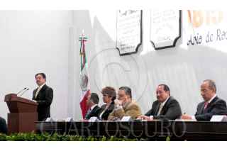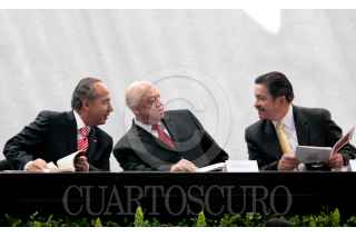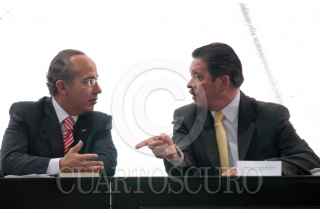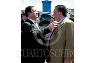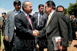 ARIO DE ROSALES, MICHOACAN, 07MARZO2010.- El presidente Felipe Calderón conversa con Carlos Navarrete, presidente de la mesa directiva del Senado al termino de la ceremonia del CXCV aniversario de la instalación del Primer Tribunal Supremo para la América Mexicana. FOTO: CUARTOSCURO.COM
