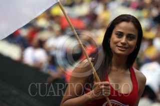 MÉXICO, D.F., 07MARZO2010.- Una edecan camina en la cancha del estadio Azteca, previo al encuentro entre America-Queretaro fecha 9 del Torneo Bicentenario. FOTO: SÁSHENKA GUTIÉRREZ/CUARTOSCURO.COM
