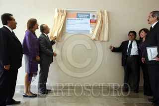 SAN PABLO APETATITLAN DE ANTONIO CARBAJAL, TLAXCALA, 08MARZO2010.- Felipe Calderón, Presidente de México, su esposa Margarita Zavala junto a Jose Ángel Cordova Villalobos, Secretario de salud, durante la inauguración del Hospital de la Mujer en el estado. FOTO: ALFREDO GUERRERO/CUARTOSCURO.COM