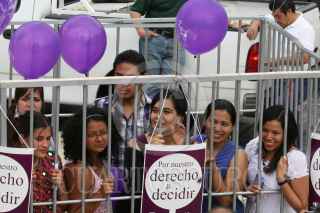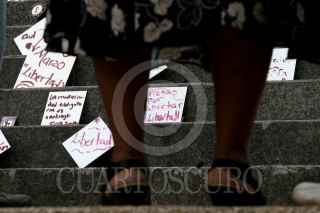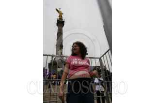 MÉXICO D.F., 08MARZO2010.- Mujeres integrantes de Nuestro Derecho a Decidir, se manifestaron en el Ángel de la Independencia a favor del aborto y de los derechos de la mujer, esto al conmemorarse el Día Internacional de la Mujer. FOTO: GUILLERMO PEREA/CUARTOSCURO.COM