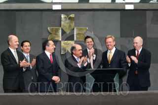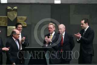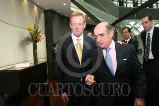 MÉXICO D.F., 08MARZO2010.- Luis Tellez Kuenzler. Presidente de la Bolsa de Mexicana de Valores, acompañado Craig Donohue, director general del Chicago Mercantile Exchange (CME) Group, dieron a conocer los detalles por la cual se firmaran una alianza estratégica, entre ambos grupos. FOTO: GUILLERMO PEREA/CUARTOSCURO.COM