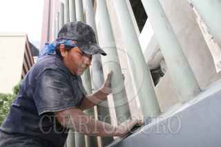 MÉXICO D.F., 08MARZO2010.- Teresa Malpica de 42 años, madre soltera de tres hijos, una mujer y dos varones, desde hace 5 años se dedica la oficio de la pintura en hogares y edificios en constrición, el cual le a dado la experiencia para que hoy sea considerada como maestra pintora y sea motivo de orgullo ya que este oficio le ha permitido subsistir y abatir sus gastos día con día. Hoy se conmemora el Día Internacional de la Mujer. FOTO: GUILLERMO PEREA/CUARTOSCURO.COM