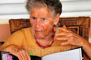 AJIJIC, JALISCO, 09MARZO2010.- La reconocida embajadora de la cocina mexicana en el mundo: Diana Kennedy, en una visita al pueblo de Ajijic, dió una platica acerca de su último libro “Oaxaca al gusto” y dio a conocer de ser esta su ultima obra escrita, ya que piensa trabajar en una fundación que llevara su nombre y el legado importante de la salvaguardia de la cocina autentica mexicana además que el respeto a las tradiciones y los ingredientes naturales de este país. FOTO:MARIA DI PAOLA BLUM/CUARTOSCURO.COM
