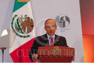 MÉXICO, D.F., 10MARZO2010.- El presidente Felipe Calderón durante su participación en la 9 Convención Nacional de la American Chamber of Commerce of Mexico que se realizo en un hotel de la ciudad. FOTO: RODOLFO ANGULO/CUARTOSCURO.COM