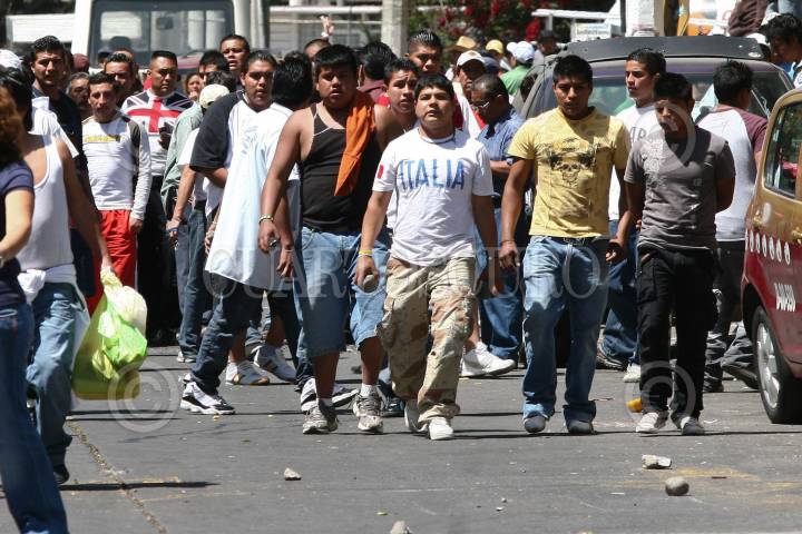 MÉXICO, D.F., 11MARZO2010.- Vendedores ambulantes lanzaron rocas al termino del operativo que que elementos de la Policía Federal, SSP-DF, SAT y de la procuraduria del Distrito Federal, realizaron en un mercado sobre ruedas en contra de ropa pirata en la Unidad Habitacional Santa Fe en la delegación Alvaro Obregón. FOTO: SAÚL LÓPEZ/CUARTOSCURO.COM