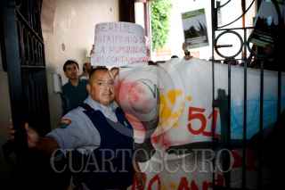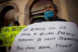 QUERETARO, QUERETARO, 11MARZO2010.- Habitantes del municipio de Tolimán y Ezequiel Montes acompañados de activistas y ambientalistas, se manifestaron en la Plaza de Armas y en las instalaciones de la Secretaría de Gobierno estatal para intentar frenar la instalación de una planta de Antimonio que afectaría a las poblaciones de ambos municipios. Esta sería la segunda vez que intenta instalarse esta planta. La primera fue en el municipio de Cadereyta y fue rechazada por los mismos pobladores. FOTO: DEMIAN CHÁVEZ/CUARTOSCURO.COM