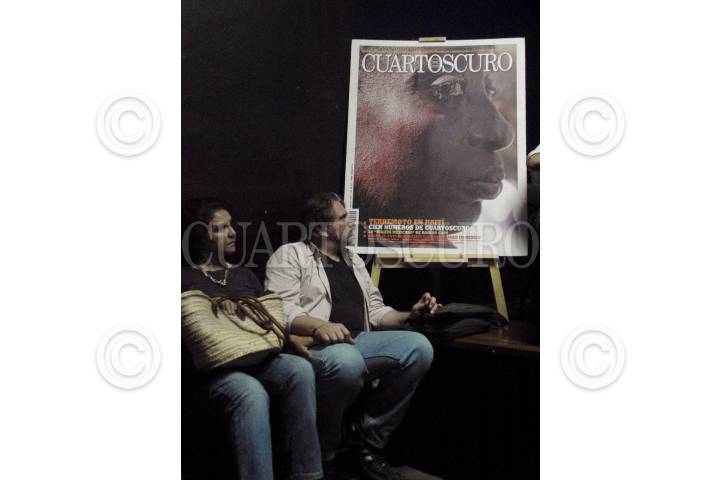 CUERNAVACA, MORELOS, 12MARZO2010.- Integrantes del colectivo "Taller la Guayaba", posan junto con el director de la Revista y Agencia Cuartoscuro Pedro Valtierra, durante la presentación del número 100 de la Revista Cuartoscuro en el Centro Morelense de las Artes. FOTO: GUADALUPE CARRILLO/CUARTOSCURO.COM