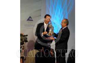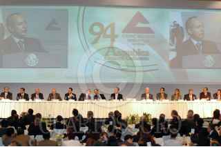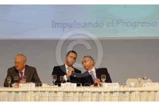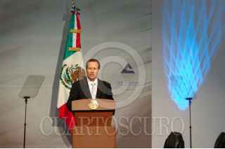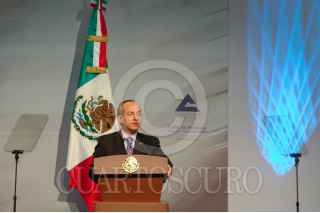 MÉXICO, D.F., 12MARZO2010.- El presidente Felipe Calderon durante la comida de la toma de protesta del Consejo Directivo de la Confederación de Cámaras Nacionales de Comercio, Servicio y Turismo 2010 - 2011 que se realizo en el centro de exposiciones Banamex. FOTO: RODOLFO ANGULO/CUARTOSCURO.COM