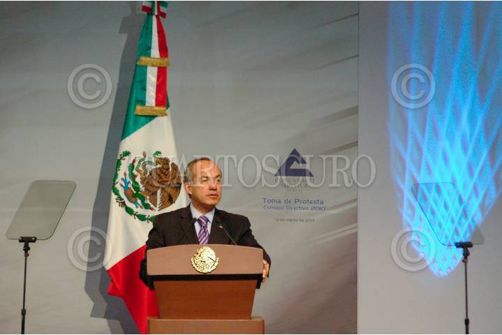 MÉXICO, D.F., 12MARZO2010.- El presidente Felipe Calderon durante la comida de la toma de protesta del Consejo Directivo de la Confederación de Cámaras Nacionales de Comercio, Servicio y Turismo 2010 - 2011 que se realizo en el centro de exposiciones Banamex. FOTO: RODOLFO ANGULO/CUARTOSCURO.COM