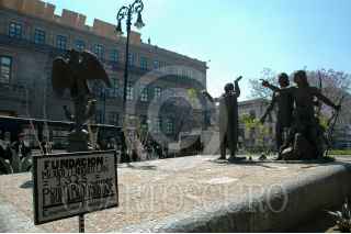 MÉXICO, D.F., 13MARZO2010.- La escultura en memoria de la Fundación de México - Tenochtitlan es de Juan Olaguíbel y se ecuentra en la calle de Pino Suarez frente al edificio de la Suprema Corte y simboliza el encuentro por parte del pueblo mexica del sitio elegido para la fundación de Tenochtitlan indicado con la señal del águila posada sobre un nopal y devorando una serpiente. Este día se cumplen 685 años de la fundación de México - Tenochtitlan por parte del pueblo mexica. FOTO: RODOLFO ANGULO/CUARTOSCURO.COM