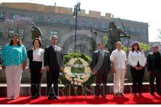 MÉXICO, D.F., 13MARZO2010.- Alejandro Rojas Díaz Duran, secretario de Turismo deposito una ofrenda floral y realizo una guradia de honor durante una ceremonia por el 685 aniversario de la fundación de México - Tenochtitlan por parte del pueblo mexica. FOTO: RODOLFO ANGULO/CUARTOSCURO.COM