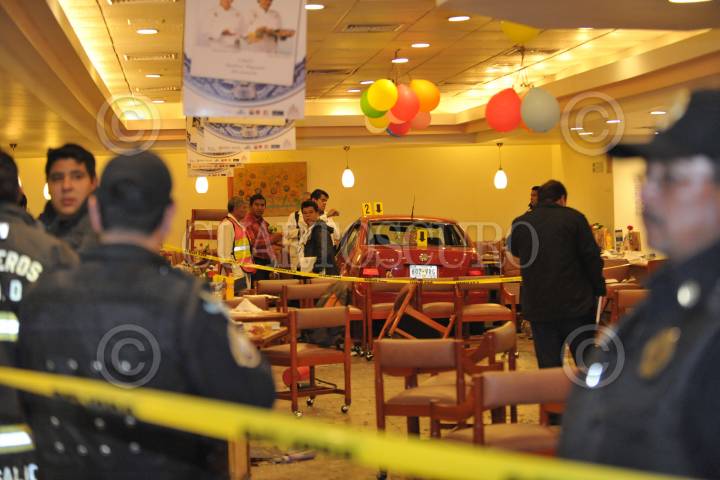 MÉXICO, D.F., 14MARZO2010.- Dos personas perdieron la vida al impactar el automóvil en que viajaban dentro de un Samnborns después de haber sido parte de una persecución y balacera en la esquina de la avenida Montevideo e Insurgentes en la colonia Lindavista. Al lugar arribaron elementos de rescate para la atención de lesionados de personas atropelladas y gente que sufrió crisis nerviosa. FOTO: LUIS CARBAYO/CUARTOSCURO.COM