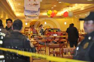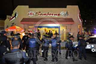 MÉXICO, D.F., 14MARZO2010.- Dos personas perdieron la vida al impactar el automóvil en que viajaban dentro de un Samnborns después de haber sido parte de una persecución y balacera en la esquina de la avenida Montevideo e Insurgentes en la colonia Lindavista. Al lugar arribaron elementos de rescate para la atención de lesionados de personas atropelladas y gente que sufrió crisis nerviosa. FOTO: LUIS CARBAYO/CUARTOSCURO.COM