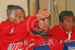 MÉXICO, D.F., 15MARZO2010.- Roberto Mansur, presidente ejecutivo del los Diablos Rojos, Max "Mako" Oliveras, manager, y Roberto Castellon, gerente deportivo de los Diablos Rojos del Mexico, ofrecieron una conferencia de prensa donde presentaron su roster con el que actuarán en la temporada 2010, de la Liga Mexicana de Beisbol (LMB). FOTO: SAÚL LÓPEZ/CUARTOSCURO.COM