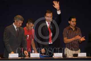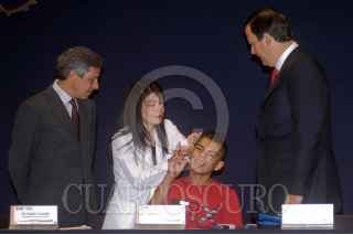 MÉXICO, D.F., 16MARZO2010.- Claudio X. González, presidente de Fundación Televisa, y Marcelo Ebrard Casaubón, jefe de Gobierno del Distrito Federal, encabezaron la entrega de 400 aparatos auditivos a personas de escasos recursos de diferentes delegaciones. FOTO: ISAAC ESQUIVEL/CUARTOSCURO.COM
