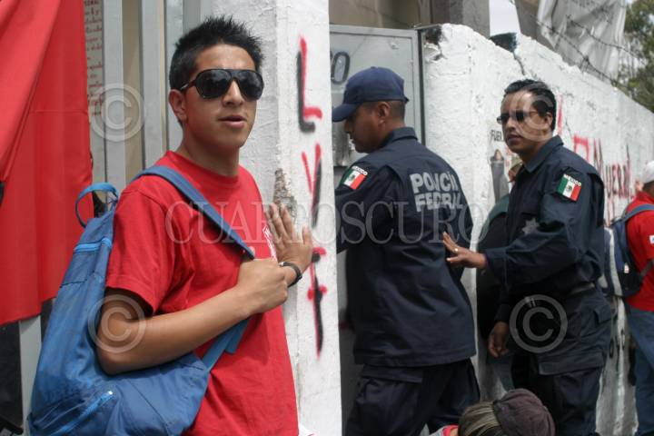 MÉXICO, D.F., 16MARZO2010.- Integrantes y simpatizantes del Sindicato Mexicano de Electricistas (SME), colocaron banderas rojinegras en instalaciones y subestaciones donde operaba la extinta Luz y Fuerza del Centro (LyFC), esto como parte del plantón que mantendrán en la ex paraestatal. En la imagen el campamento Belen de las Flores ubicado en la avenida Camino Real a Toluca, delegación Álvaro Obregón. FOTO: MISAEL VALTIERRA/CUARTOSCURO.COM