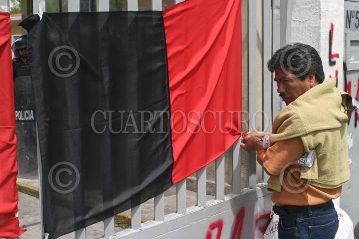 MÉXICO, D.F., 16MARZO2010.- Integrantes y simpatizantes del Sindicato Mexicano de Electricistas (SME), colocaron banderas rojinegras en instalaciones y subestaciones donde operaba la extinta Luz y Fuerza del Centro (LyFC), esto como parte del plantón que mantendrán en la ex paraestatal. En la imagen el campamento Belen de las Flores ubicado en la avenida Camino Real a Toluca, delegación Álvaro Obregón. FOTO: MISAEL VALTIERRA/CUARTOSCURO.COM