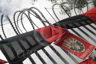 MÉXICO, D.F., 16MARZO2010.- Integrantes y simpatizantes del Sindicato Mexicano de Electricistas (SME), colocaron banderas rojinegras en instalaciones y subestaciones donde operaba la extinta Luz y Fuerza del Centro (LyFC), esto como parte del plantón que mantendrán en la ex paraestatal. En la imagen el campamento Belen de las Flores ubicado en la avenida Camino Real a Toluca, delegación Álvaro Obregón. FOTO: MISAEL VALTIERRA/CUARTOSCURO.COM