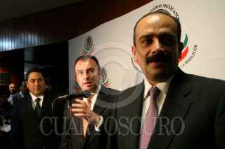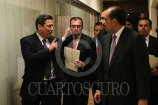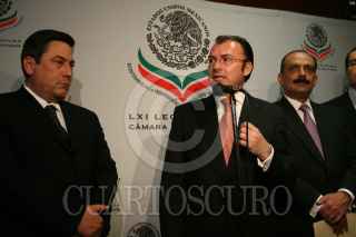 MÉXICO D.F., 16MARZO2010.-Baltazar Hinojosa, Luis Videgaray y Sebastian Lerdo de Tejada, Diputados del PRI, dieron a conocer detalles del Plan de Austeridad Presupuestal, el cual es propuesto por el ejecutivo, esto en las instalaciones de la Cámara de Diputados. FOTO: GUILLERMO PEREA/CUARTOSCURO.COM