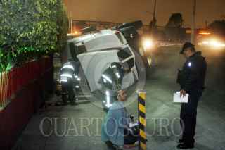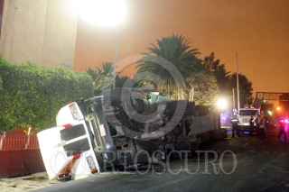 MÉXICO, D.F., 17MARZO2010.- Esta madrugada se registró la volcadura de un trailer con 20 toneladas de equipo para jardinería en los carriles laterales de Zaragoza a la altura de la colonia Juan Escutia en Iztapalapa, cabe mencionar que dicho paso se encuentra en pésimas condiciones. FOTO: LUZ ACEVEDO/CUARTOSCURO.COM