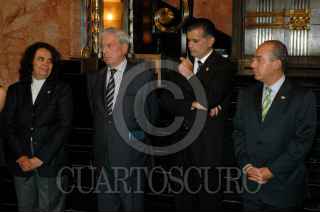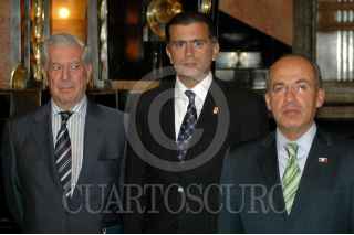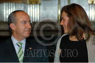 MÉXICO, D.F., 17MARZO2010.- Teresa Vicencio, titular del INBA; Consuelo Saizar, titular de Conaculta; el escritor Mario Vargas Llosa, Alonso Lujambio, secretario de Educación Pública; el presidente Felipe Calderón y su esposa Margarita Zavala y Boudewijn Dereymaeker embajador de Belgica durante la inauguración de la exposición "El Mundo Invisible de Rene Magritte" que se exhibe en el Palacio de Bellas Artes. FOTO: RODOLFO ANGULO/CUARTOSCURO.COM