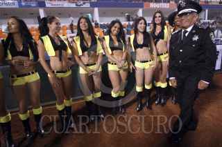 CANCÚN, QUINTANA ROO, 17MARZO2010.- El general Urbano Pérez, jefe de la policía de Cancún, se tomó la foto con las edecanes durante el partido inaugural de la Liga Mexicana de Béisbol entre los Tigres de Quintana Roo y Los Leones de Yucatán en el estadio Beto Ávila. FOTO: AMARANTA PRIETO/CUARTOSCURO.COM