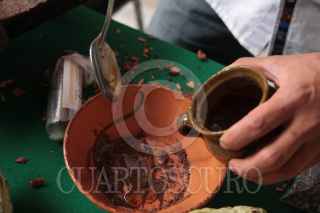VILLAHERMOSA, TABASCO, 18MARZO2010.- La hacienda cacaotera "Cholula" realizo la presentación de una receta secreta que utilizaban los Olmecas en sacrificios especiales en doncellas; esta receta consiste básicamente en chocolate amargo, pimienta, achiote y miel. Lo anterior acontece en el 1er Foro Regional de Cultura y Turismo. FOTO: MARCO POLO GUZMÁN HERNÁNDEZ/CUARTOSCURO.COM