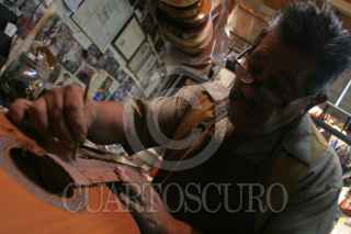 MÉXICO, D.F., 18MARZO2010.- Don Chema Enriquez, artesano proveniente de Michoacan; lleva en el negocio de elaboración y reparación de instrumentos musicales a base de madera y cuerdas como guitarras, violines entre otros, mas de 40 años en el mercado cultural de artesanías de la Ciudadela, donde su reputación lo a hecho tan famosos que artistas de diversas partes del estado y de otros países, recurren a el para brindarles un servicio de calidad. FOTO: ENRIQUE ORDÓÑEZ/CUARTOSCURO.COM