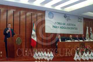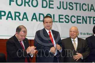 MÉXICO D.F., 18MARZO2010.- Marcelo Ebrard Casaubon, Jefe de Gobierno, acompañado de Edgar Elias Azar, Pesidente del Tribunal Superior de Justicia y del Consejo de la Judicatura del D.F. y Guillermo Ortiz, Magistrado Presidente de la Suprema Corte de Justicia de la Nación, inaguraron el foro Justicia para Adolecentes, esto en las instalaciones Tribunal Superior de Justicia del Distrito Federal. FOTO: CUARTOSCURO.COM