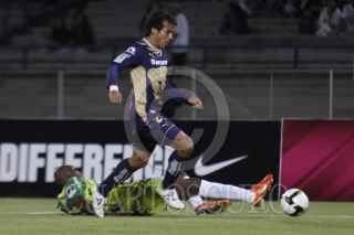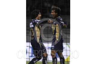 MÉXICO, D.F., 18MARZO2010.- Ismael Iñiguez (PUMAS) festeja una anotación en el partido donde los Pumas de la UNAM vencieron 5 goles a uno a CD Marathon de la Liga de Campeones de la CONCACAF disputado en el estadio de Ciudad Universitaria. FOTO: IVÁN STEPHENS/CUARTOSCURO.COM