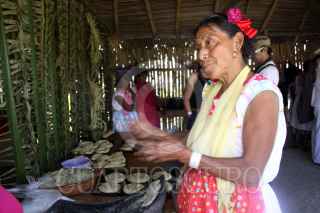 PAPANTLA, VERACRUZ, 19 MARZO2010.- El parque temático donde se llevan a cabo las actividades de la Cumbre Tajín (que este año tendrá lugar del 19 al 22 de marzo), se encuentran los diferentes nichos, espacios construidos especialmente para los distintos actos de la cumbre. Así tenemos el nicho de los aromas y sabores, de la paz, de la sanación, de la purificación, de la tierra, de la danza, donde indigenas Totonacas llegan a esta zona cada año para recibir y atender a los miles de visitantes. FOTO: SÁSHENKA GUTIÉRREZ/CUARTOSCURO.COM