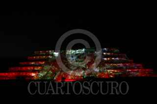 PAPANTLA, VERACRUZ, 20MARZO2010.- El espectáculo de luz y sonido Tajín Vive, que se conforma con un recorrido nocturno por la ciudad sagrada de la cultura Totonaca permite al espectador una experiencia profunda e inolvidable; permite el contacto directo las deidades y los habitantes de una cosmogonía única de la zona arqueológica de El Tajín. Con este espectáculo se presenta cada noche durante las actividades de Cumbre Tajín 2010. FOTO: SÁSHENKA GUTIÉRREZ/CUARTOSCURO.COM