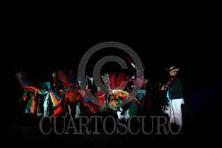PAPANTLA, VERACRUZ, 20MARZO2010.- El espectáculo de luz y sonido Tajín Vive, que se conforma con un recorrido nocturno por la ciudad sagrada de la cultura Totonaca permite al espectador una experiencia profunda e inolvidable; permite el contacto directo las deidades y los habitantes de una cosmogonía única de la zona arqueológica de El Tajín. Con este espectáculo se presenta cada noche durante las actividades de Cumbre Tajín 2010. FOTO: SÁSHENKA GUTIÉRREZ/CUARTOSCURO.COM