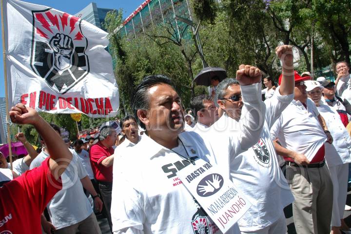 MÉXICO, D.F., 20MARZO2010.- Martin Esparza, lider del Sindicato Mexicano de Electricistas (SME) durante un mitin realizado en el Hemiciclo a Juarez después de una Marcha por la Paz y el Trabajo que simpatizantes y ex trabajadores de la extinta Luz y Fuerza del Centro realizaron desde el Ángel de la Independencia. FOTO: RODOLFO ANGULO/CUARTOSCURO.COM