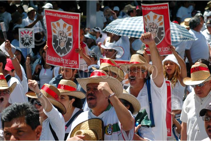 MÉXICO, D.F., 20MARZO2010.- Martin Esparza, lider del Sindicato Mexicano de Electricistas (SME) durante un mitin realizado en el Hemiciclo a Juarez después de una Marcha por la Paz y el Trabajo que simpatizantes y ex trabajadores de la extinta Luz y Fuerza del Centro realizaron desde el Ángel de la Independencia. FOTO: RODOLFO ANGULO/CUARTOSCURO.COM