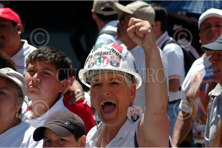 MÉXICO, D.F., 20MARZO2010.- Martin Esparza, lider del Sindicato Mexicano de Electricistas (SME) durante un mitin realizado en el Hemiciclo a Juarez después de una Marcha por la Paz y el Trabajo que simpatizantes y ex trabajadores de la extinta Luz y Fuerza del Centro realizaron desde el Ángel de la Independencia. FOTO: RODOLFO ANGULO/CUARTOSCURO.COM