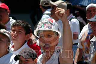 MÉXICO, D.F., 20MARZO2010.- Martin Esparza, lider del Sindicato Mexicano de Electricistas (SME) durante un mitin realizado en el Hemiciclo a Juarez después de una Marcha por la Paz y el Trabajo que simpatizantes y ex trabajadores de la extinta Luz y Fuerza del Centro realizaron desde el Ángel de la Independencia. FOTO: RODOLFO ANGULO/CUARTOSCURO.COM