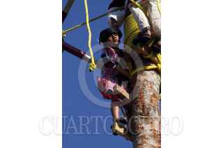 PAPANTLA, VERACRUZ, 21MARZO2010.-Ceremonia Ritual de la Danza de los Voladores quienes 2009 La UNESCO reconoció a la Ceremonia Ritual de Voladores como Patrimonio Cultural Intangible de la Humanidad. Esta danza prehispánica con mas de 2500 años de antiguedad gira en torno al arbol o palo del volador considerado el axis mundi transmisor entre el inframundo, la Tierra y el Cosmos; esto se presenta como parte de las actividades Cumbre Tajín 2010. FOTO: SÁSHENKA GUTIÉRREZ/CUARTOSCURO.COM
