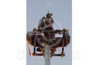 PAPANTLA, VERACRUZ, 21MARZO2010.-Ceremonia Ritual de la Danza de los Voladores quienes 2009 La UNESCO reconoció a la Ceremonia Ritual de Voladores como Patrimonio Cultural Intangible de la Humanidad. Esta danza prehispánica con mas de 2500 años de antiguedad gira en torno al arbol o palo del volador considerado el axis mundi transmisor entre el inframundo, la Tierra y el Cosmos; esto se presenta como parte de las actividades Cumbre Tajín 2010. FOTO: SÁSHENKA GUTIÉRREZ/CUARTOSCURO.COM