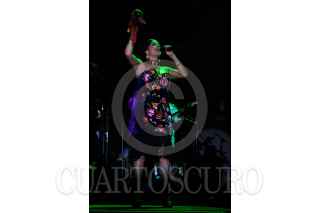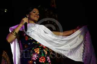 PUEBLA, PUEBLA, 21MARZO2010.- La cantante oaxaqueña, Lila Downs ofreció un concierto ante cientos de personas en el marco del Segundo Festival Estatal de Arte y Cultura Indígena en el zócalo de la capital poblana. FOTO: FRANCISCO GUASCO/CUARTOSCURO.COM