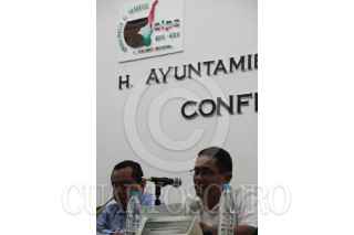 JALPA DE MÉNDEZ, TABASCO, 22MARZO2010.- El director de la contraloria municipal Fernando Pedrero, realizo una denuncia de caracter ministerial en contra de los ex ediles Jesús Selván y Williams Pedrero. Lo anterior acontece en la casa de la cultura de esta cabecera municipal; donde revela el contralor que la deuda del desfalco asciende a más de 26 millones de pesos y que tal acción mantiene al municipio en próximo embargo por un banco. FOTO: MARCO POLO GUZMÁN HERNÁNDEZ/CUARTOSCURO.COM