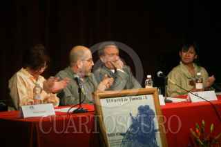 MÉXICO, D.F., 22MARZO2010.- Paloma Ibáñez Villalobos, Rectora de la Universidad Autónoma Metropolitana (UAM), Unidad-Azcapotzalco, Vladimiro Rivas, Catedrático de la Facultad de Ciencias Sociales y Humanidades de dicha Universidad, Jorge Ruíz Dueñas, Escritor y Poeta mexicano, y Lilia Pérez Franco, Catedrática del Departamento de Sociología de la UAM-Azcapotzalco, participaron en un Homenaje a Carlos Montemayor (1947-2010), escritor quien el pasado domingo 28 de febrero perdió la vida a consecuencia de una enfermedad. El homenaje postumo se realizó en el auditorio "Incalli Ixcahuicopa", de la UAM-Azcapotzalco. FOTO: MISAEL VALTIERRA/CUARTOSCURO.COM