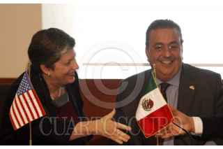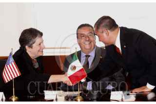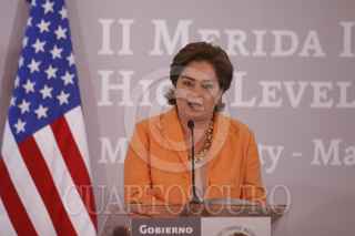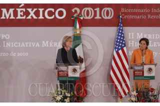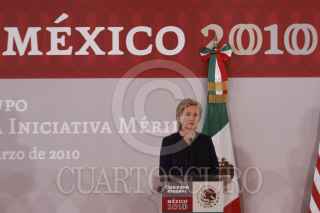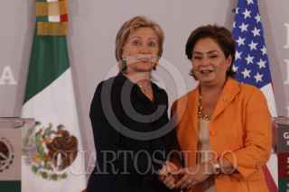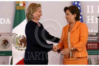 MÉXICO, D.F., 23MARZO2010.- Hilary Clinton, Secretaria de Estado Estadounidense, y Patricia Espinoza Cantellano, Secretaria de Relaciones Exteriores, realizaron una conferencia en la sede de la Secretaría de Relaciones Exteriores al finalizar la reunión de alto nivel binacional Méxio-Estados Unidos. FOTO: IVÁN STEPHENS/CUARTOSCURO.COM
