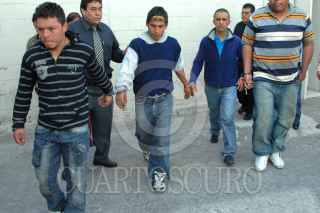 MÉXICO, D.F., 24MARZO2010.- Cinco jovenes, entre ellos una mujer; fueron presentados en las instalaciones de la PGJDF por su presunta responsabilidad en el asalto a camiones foraneos en la carretera México-Puebla. FOTO: CUARTOSCURO.COM