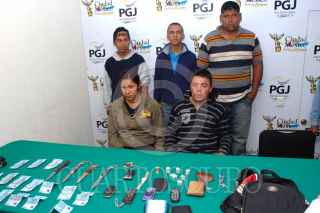 MÉXICO, D.F., 24MARZO2010.- Cinco jovenes, entre ellos una mujer; fueron presentados en las instalaciones de la PGJDF por su presunta responsabilidad en el asalto a camiones foraneos en la carretera México-Puebla. FOTO: CUARTOSCURO.COM