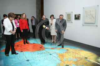 MÉXICO, D.F., 25MARZO2010.- Patricia Espinosa Cantellano, Secretaría de Relaciones Exteriores, Francisco Saynez Mendoza, Secretario de Marina y Felipe Calderón Hinojosa, Presidente de México, durante la inauguración de la muestra “Paseo en mapa, explorando las claves de América Latina”, que expone 200 años de historia de la conformación de las naciones latinoamericanas a través de la cartografía, esto en el Antiguo Colegio de San Ildefonso. FOTO: CUARTOSCURO.COM
