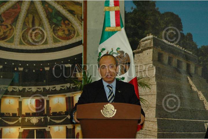 MÉXICO, D.F., 26MARZO2010.- El presidente Felipe Calderón durante el desayuno para inaugurar las sesiones de trabajo "Compromiso por el Turismo de México" que se realizo en el salón Adolfo López Mateos de la residencia oficial de Los Pinos. FOTO: RODOLFO ANGULO/CUARTOSCURO.COM