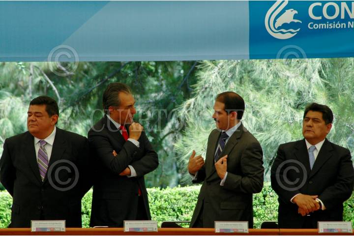 MÉXICO, D.F., 26MARZO2010.- José Guadalupe Osuna Millán, gobernador de Baja California; José Luis Luege Tamargo, director de Conagua y el presidente Felipe Calderón durante la presentación de la Agenda del Agua 2030 que se realizo en la Explanada del Monumento a Francisco I. Madero de la residencia oficial de Los Pinos. FOTO: RODOLFO ANGULO/CUARTOSCURO.COM
