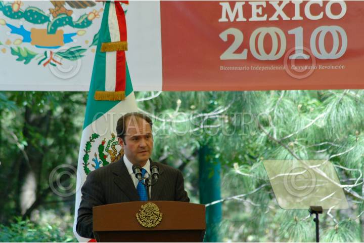 MÉXICO, D.F., 26MARZO2010.- José Guadalupe Osuna Millán, gobernador de Baja California; José Luis Luege Tamargo, director de Conagua y el presidente Felipe Calderón durante la presentación de la Agenda del Agua 2030 que se realizo en la Explanada del Monumento a Francisco I. Madero de la residencia oficial de Los Pinos. FOTO: RODOLFO ANGULO/CUARTOSCURO.COM